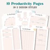 There are over 90 pages in this bundle, including several design styles, all fully editable in Canva. With a variety of looks to choose from, it’s easy to find and customize the perfect pages for your style.